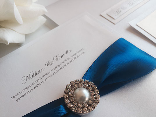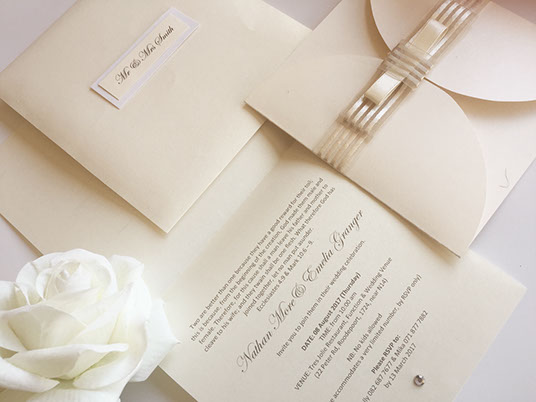 It's important to be creative with your wedding invitations. Pick from a wide collection of invites with designs that incorporate laser cutting, lace detailing, diamante pendants, bling, glitter, etc... Anything a little unexpected will grab people’s attention and make them sit up and take notice.