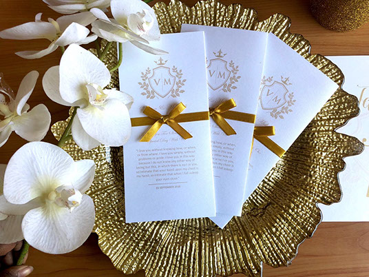 We hand make stationery that is beautifully designed and crafted to perfection, making sure it ties into your special occasion and setting.