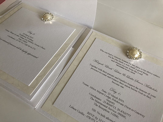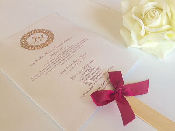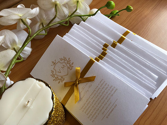 Invitation Cards, Programmes, Seating place cards, Seating Chart, Envelopes, Event/Party and Wedding Favours, Thank You Cards , Gift Boxes, Menus etc.